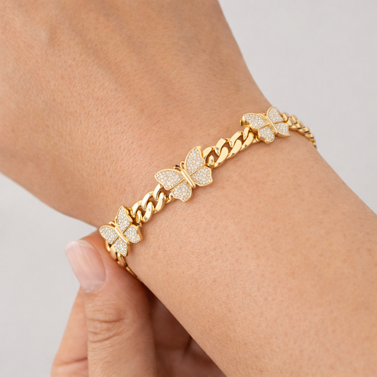 Beautiful chain for ladies with gold butterfly charm 14k real size 18