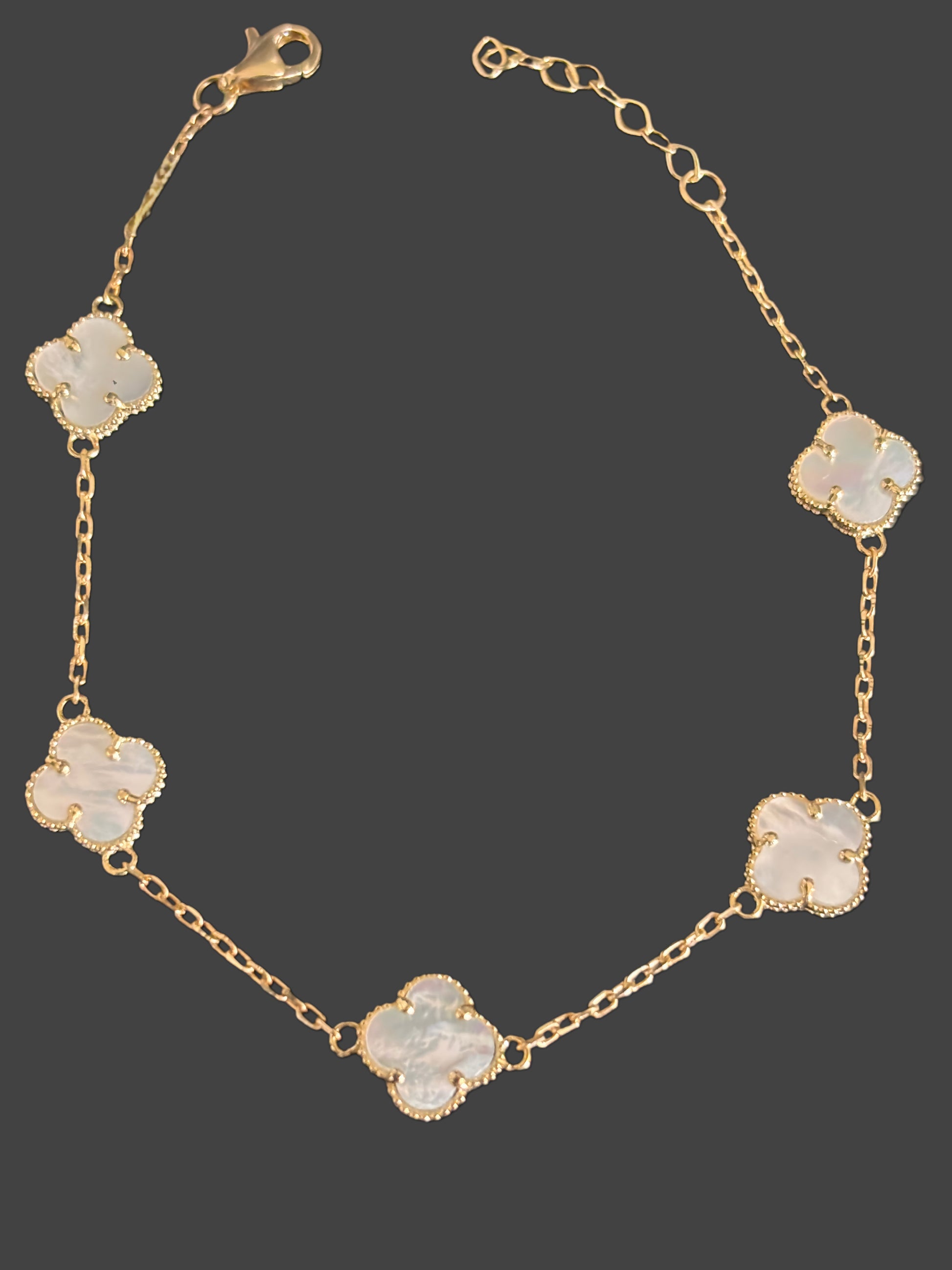 Bracelet of 5 white flowers of medium size gold 10k real size 8 and fits size 7