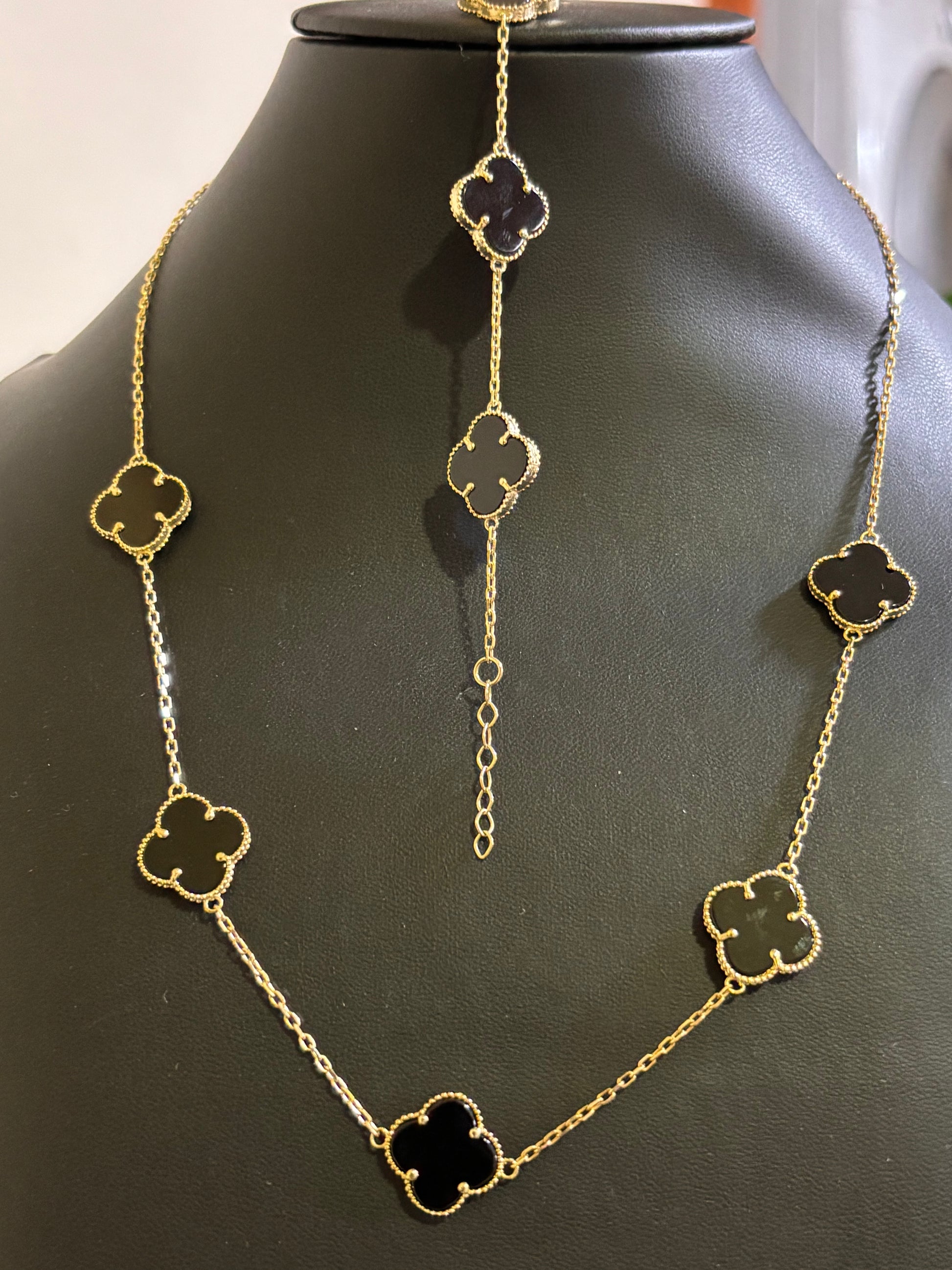 Set for ladies of black flowers of real 10k gold